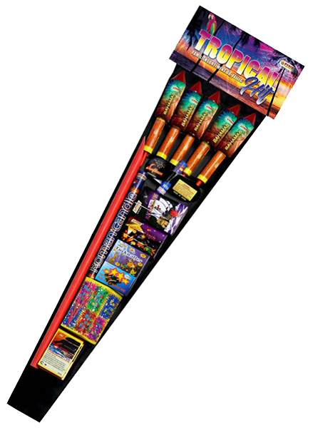 Das Tropical Hit  von Pyro Austria ist ein sehr umfangreiches Familiensortiment von der Rakete bis zur Knallerbse ist  alles dabei !!